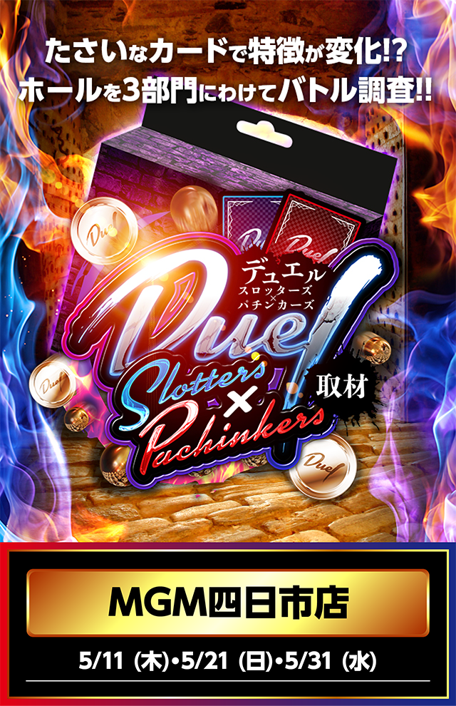 デュエルスロッターズ×パチンカーズ、ターゲットとなったのは「MGM四日市店」。