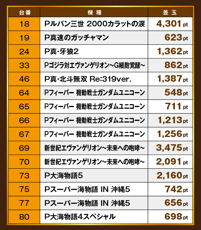 今回の「ウエスタン一之江店」の結果は全・国・制・圧!ここ3回ほどの結果を紐解くと、四カ国制圧が続きフラストレーションの溜まる展開が続いていた。しかしついに六カ国にて制圧が完了したのである。また、「光ノ国」「令ノ国」「爆ノ国」など複数の国で差枚2,000ptオーバー記録が生まれ、店内がかなりの盛り上がりを見せていたことを付け加えておく。