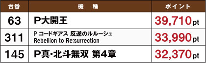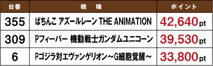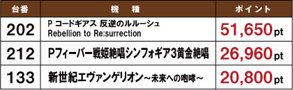 今月の「ホームランボール」の模様をお伝えしていこう。やはり『新世紀エヴァンゲリオン~未来への咆哮~』や『Pフィーバー 機動戦士ガンダムユニコーン』などの人気がいまだに絶えないが、新機種が顔を覗かせているのも事実だ。ビスティからリリースされた『P コードギアス 反逆のルルーシュ Rebellion to Re;surrection』が今回は3台ほど優秀台になっており、いずれも差玉では申し分ない結果を残している。やはり今後もこのような流れが続いていくのではないかと思われるので、ホームランボール実施時は新台や人気機種を狙っていくのがベターだろう。