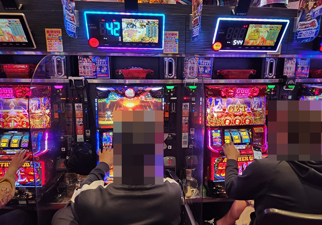 パチスロの稼働率は約8割と高く、さまざまな場所が大にぎわい!