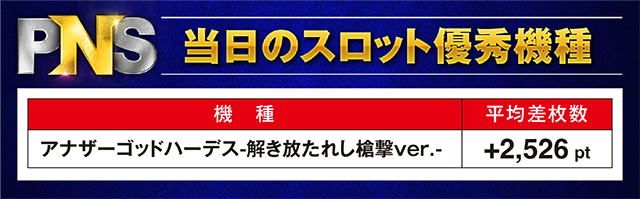 ・平均ptが2,500pt以上となった「アナザーゴッドハーデス-解き放たれし槍撃ver.-」!