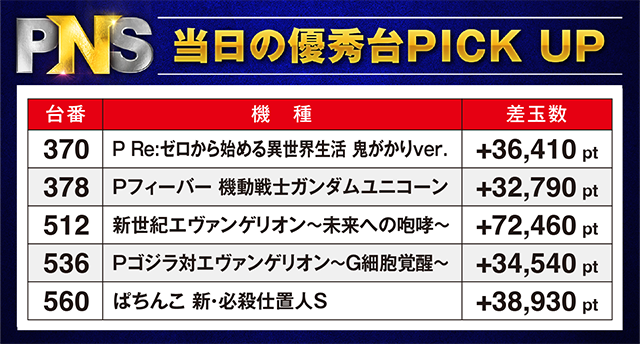 「Pフィーバー 機動戦士ガンダムユニコーン」と「Pゴジラ対エヴァンゲリオン~G細胞覚醒~」の雰囲気も明るく、笑顔のプレイヤーを目にしている。