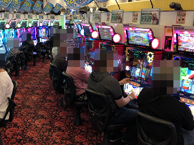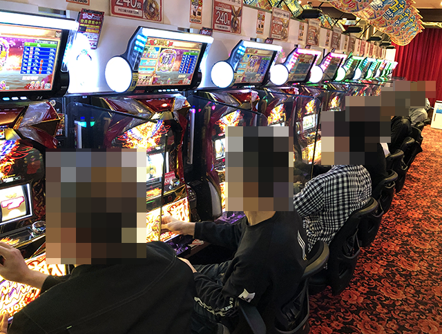 すべての台に遊技を楽しむ姿があり、どのプレイヤーも機種の性能を引き出せている様子。