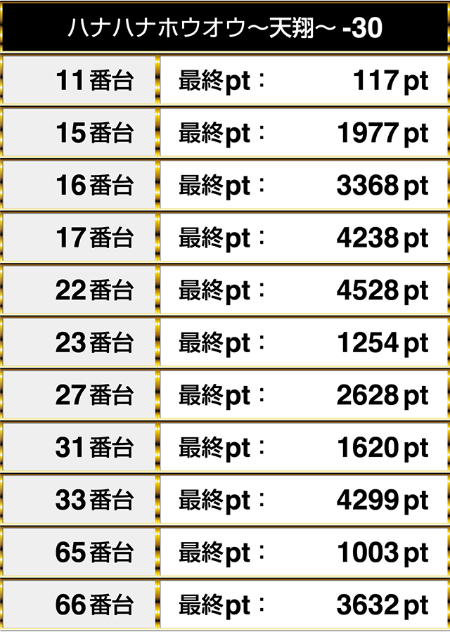 『ハナハナホウオウ~天翔~-30』の11台以上がプラスptを記録!