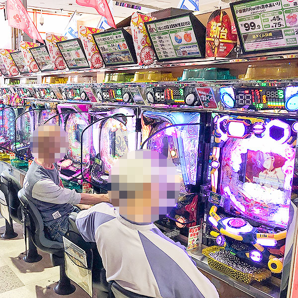 100円/89玉パチンコを見てみると、海物語シリーズに人気が集まっており、ほぼ満席となるほどのにぎわいを見せていた。