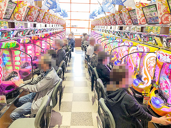 店内では貸し玉料金を問わず様々な機種で、心ゆくまで楽しむプレイヤーの姿が見られた。
