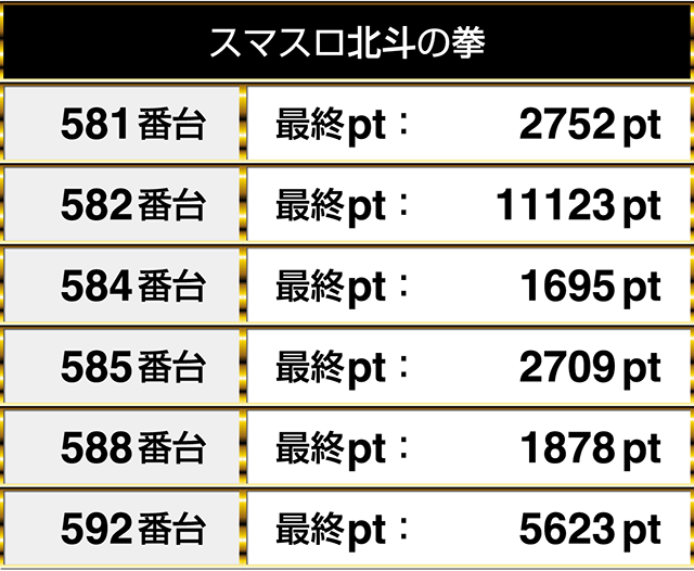 ジャグラーシリーズでは、『ファンキージャグラー2』の667番台が2484pt、『マイジャグラーⅤ』の695番台は4889ptを記録した。