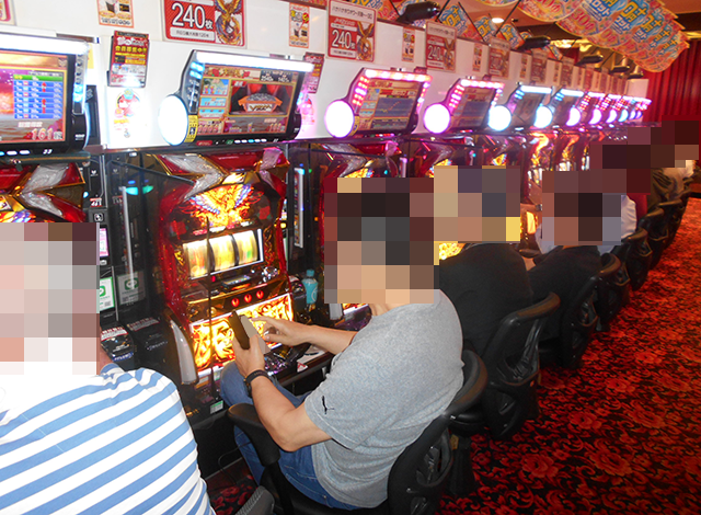 空き台が少ないうえに、遊技を満喫しているといったプレイヤーも多い。
