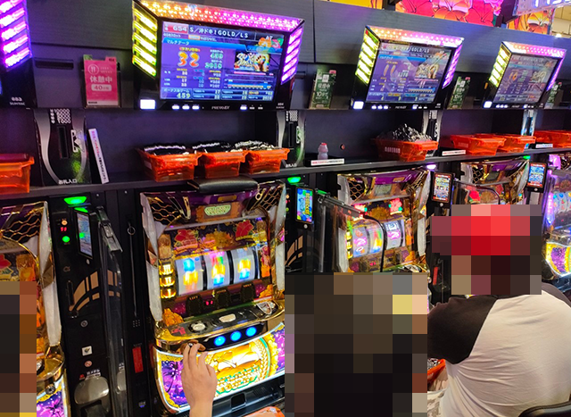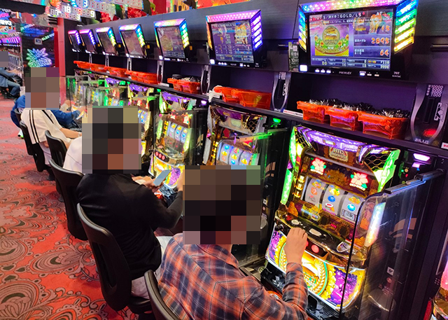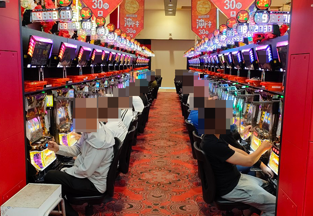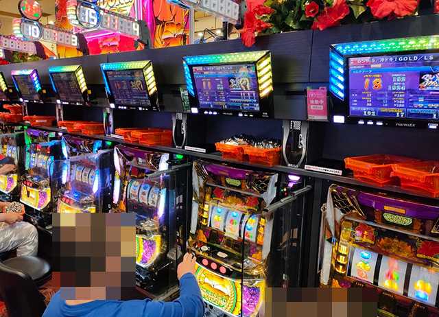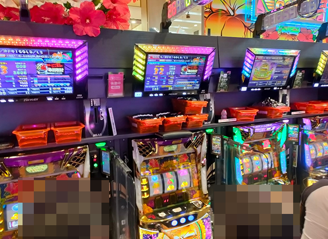にぎわいに包まれていた「沖ドキ!GOLD-30」。ほかの機種も楽しまれているなかで、とくに目立つ場所であった。