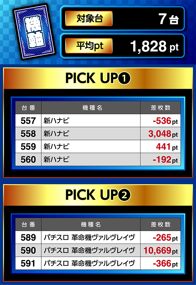 ほかにも、123番台の「PフィーバークィーンRUSH」や179番台の「Psin 七つの大罪 X-TREME」など、多彩な機種が結果を残した。