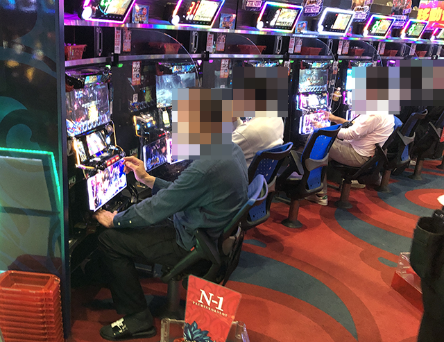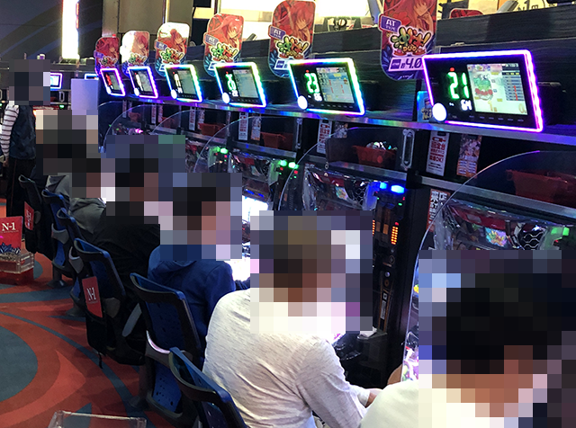 2箱以上の持ち玉を使って遊技を楽しむプレイヤーが並び、明るい雰囲気が感じられた。
