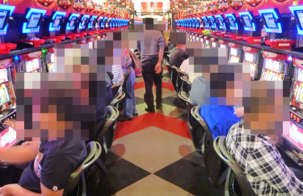 ジャグラーシリーズもほぼ満席といった状況。シマ内ではたくさんのプレイヤーの笑顔をみることができ、ボーナスタイプでも心から楽しい時間を過ごせていたようだ。