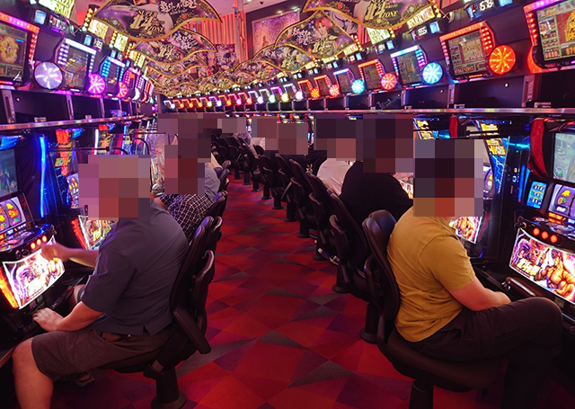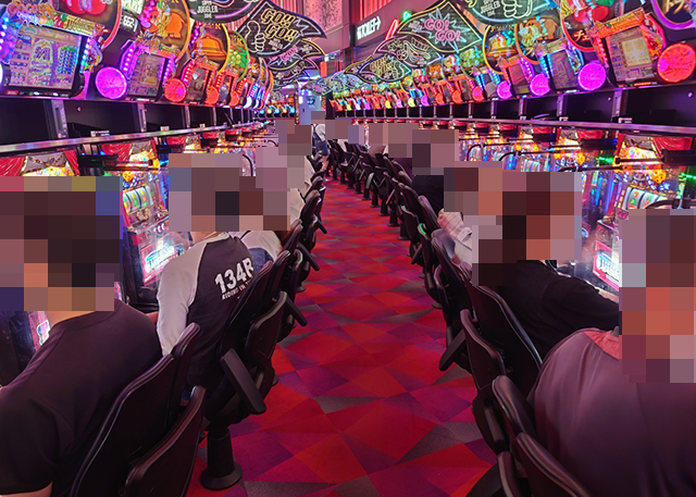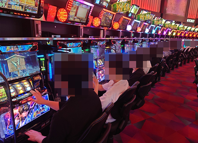 『押忍!番長ZERO』と『パチスロ バイオハザード RE:2』も稼働率が高く、楽しげなプレイヤーがズラリと並んでいた。