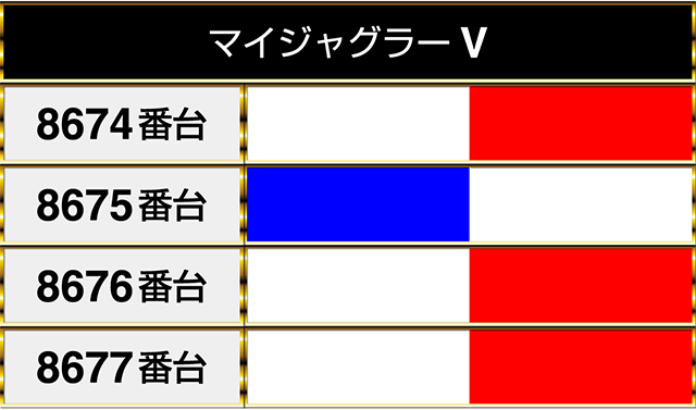 『マイジャグラーⅤ』に対する支持も厚く、空き台は少ない。