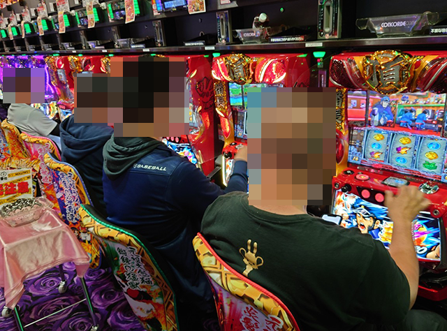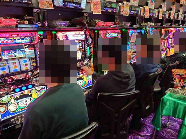 夕方頃にパチスロをみると、さまざまな機種でプレイヤーたちが活躍をしていた。