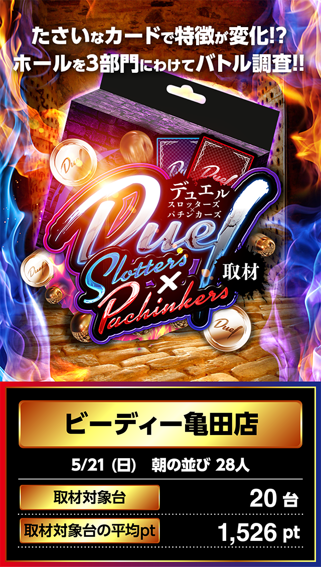 デュエルスロッターズ×パチンカーズ、ターゲットとなったのは「ビーディー亀田店」。