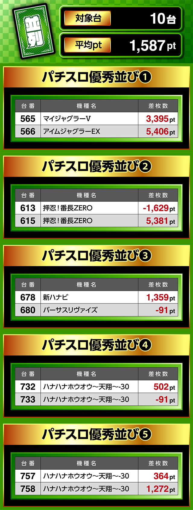 「押忍!番長ZERO」でも、615番台が5,300ptを上回った。