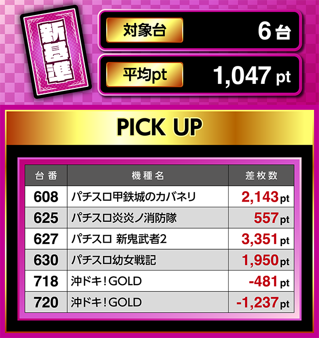 新基準は、627番台の「パチスロ 新鬼武者2」が3,351pt。