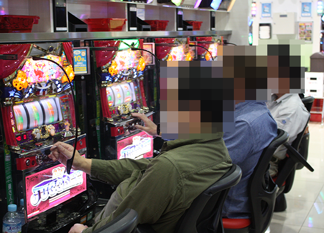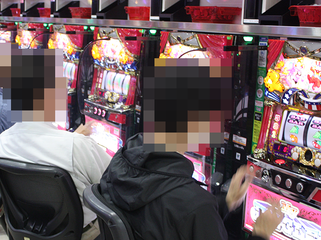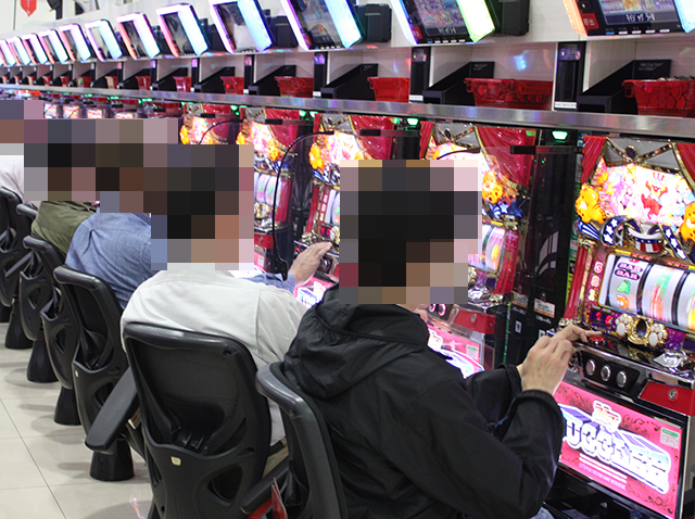パチスロの状況をうかがうと、さまざまな機種に遊技を満喫しているような姿があった。