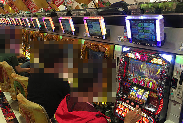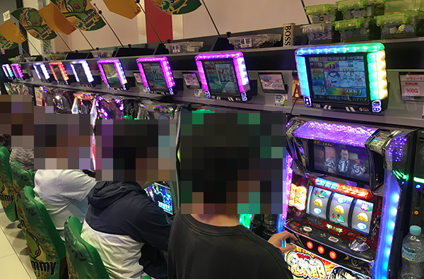 夕方頃のパチスロをみると、「SLOT魔法少女まどか☆マギカ」や「アナザーゴッドハーデス」、「沖ドキ!」など多数の機種でプレイヤーが満面の笑みを浮かべて遊技をおこなっていた。