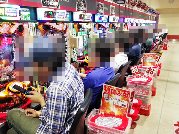 15時を過ぎた頃の4円パチンコをみてみると、「ぱちんこCR真・北斗無双」が盛況。機種の性能を上手に引き出している様子もみられるなど、プレイヤーは充実した時間を過ごせていたようだ。