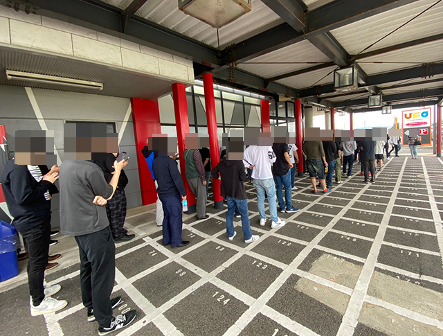 広い駐車場には朝イチからたくさんの車がとまっており、整列場所には110名以上のプレイヤーが並んでいた。