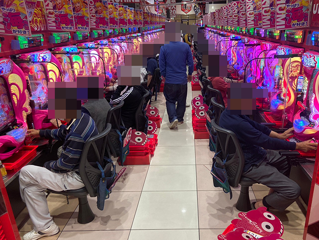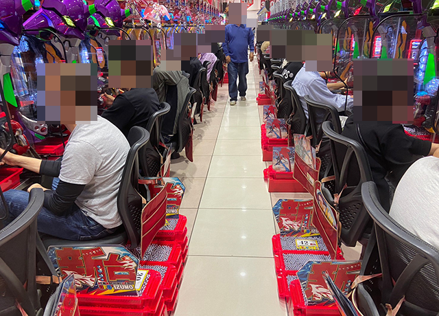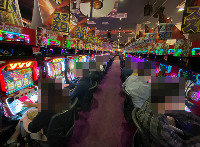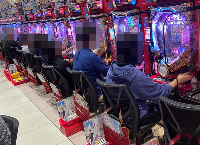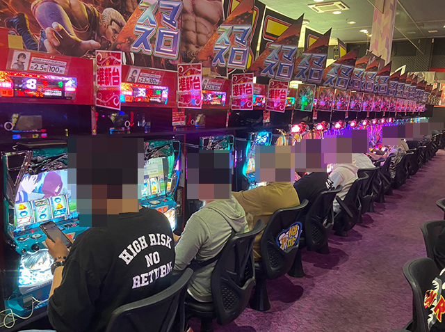 早い時間帯からさまざまな機種が人気を集め、パチンコとパチスロの両方が大にぎわいといった状況。長時間にわたっておなじ台を打ち続けている姿もあり、じっくりと遊技を楽しんでいるように思えた。
