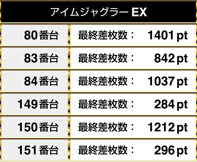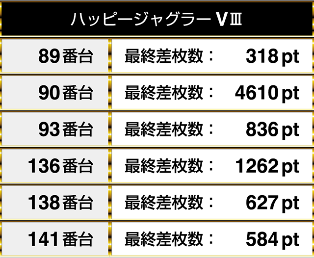 『アイムジャグラーEX』と『ハッピージャグラーVⅢ』は6台以上がプラスptを記録!!