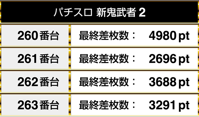 260番台は4980pt、262番台と263番台は3000pt以上であった。