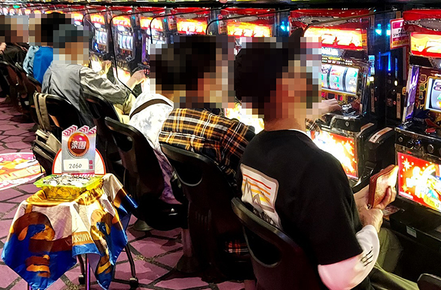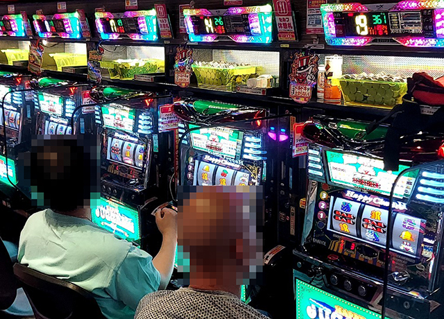 取材当日の5月25日、パチスロコーナーは朝から『スマスロ北斗の拳』『アナザーゴッドハーデス-解き放たれし槍撃 ver.-』『パチスロ甲鉄城のカバネリ』などの人気マシンたちが猛威を振るっていた。