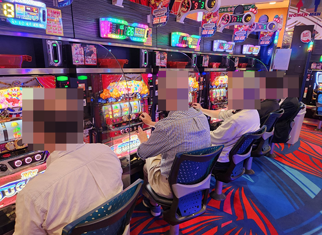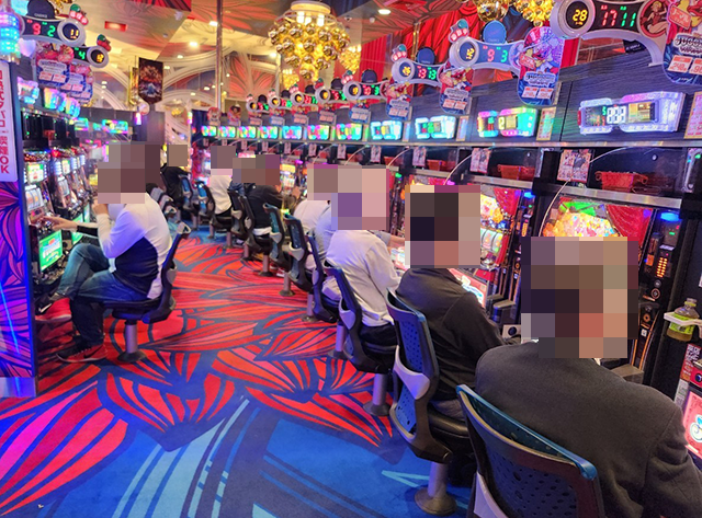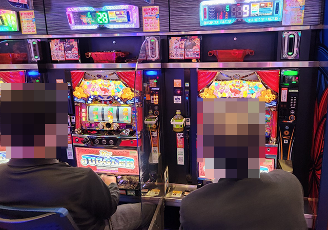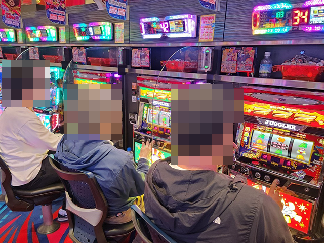 パチスロの状況をうかがうと、ジャグラーシリーズを中心に華やかな光景が広がっていた。