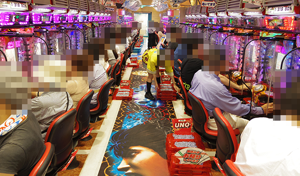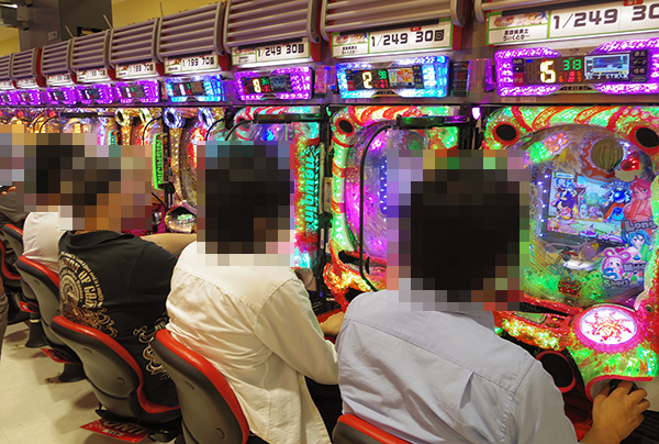 15時頃の4円パチンコのなかで人気を集めていたのは「ぱちんこCR真・北斗無双」。明るい表情で遊技を楽しんでいるプレイヤーが多く、機種の魅力を堪能できていたようだ。