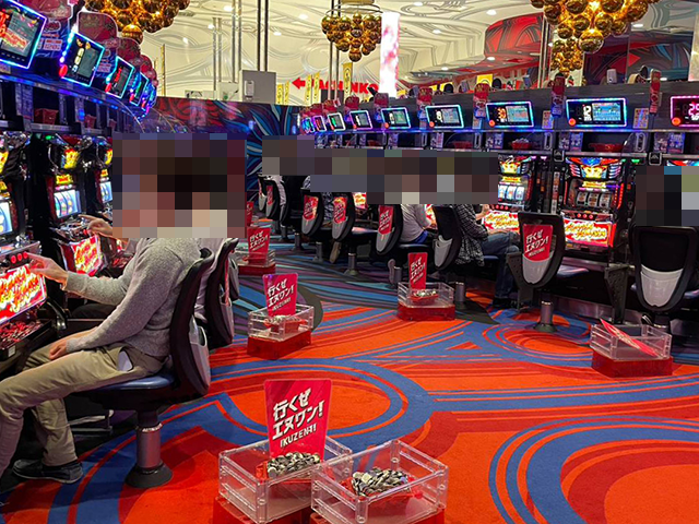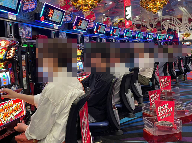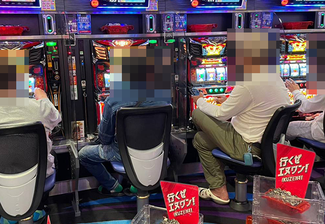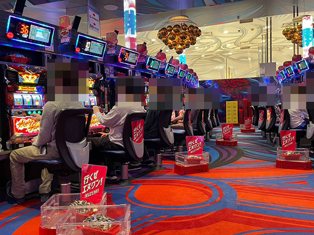 パチスロをみてみると、沖スロをはじめ、多彩な機種が盛況となっていた。