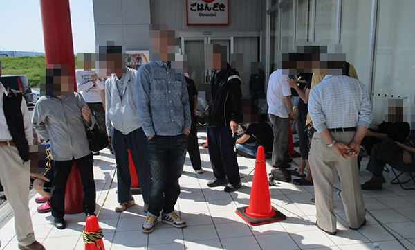 開店前に集まっていた人数は130名以上。早朝から並んでいるプレイヤーもおり、ホールに大きな期待を寄せていることが伝わってきた。