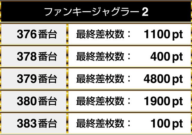 11台設置の『ファンキージャグラー2』は5台がプラスpt!!