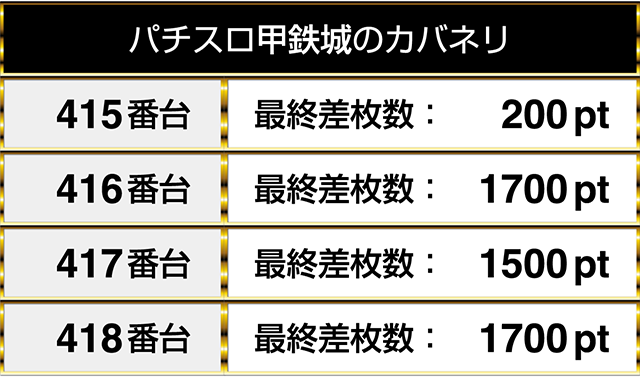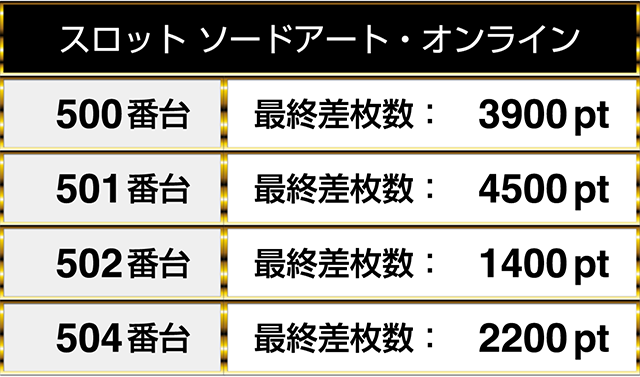 『スロット ソードアート・オンライン』は4台が1000pt以上、501番台は4500ptとなった。