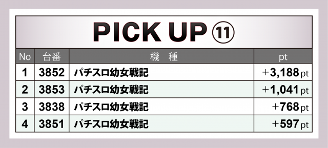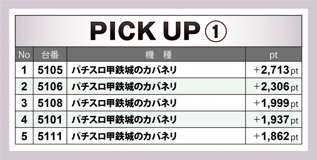合計pt数で優秀な成績を残した機種にズームイン