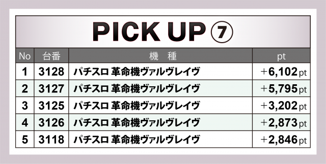 こちらの項では合計pt数で上位に食い込み、高いポイント数の台を輩出した7機種をピックアップ。