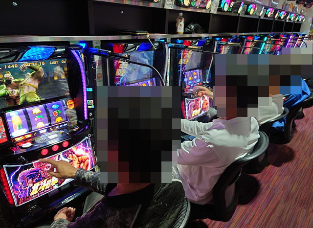 『ファンキージャグラー2』や『ハッピージャグラーVIII』にも楽しげなプレイヤーがおり、感じられるにぎわいは大きい。