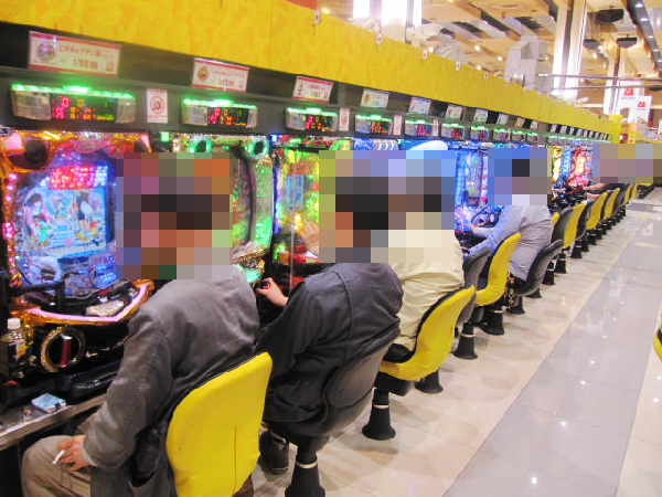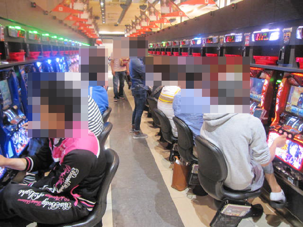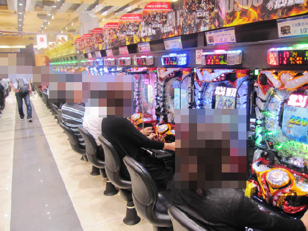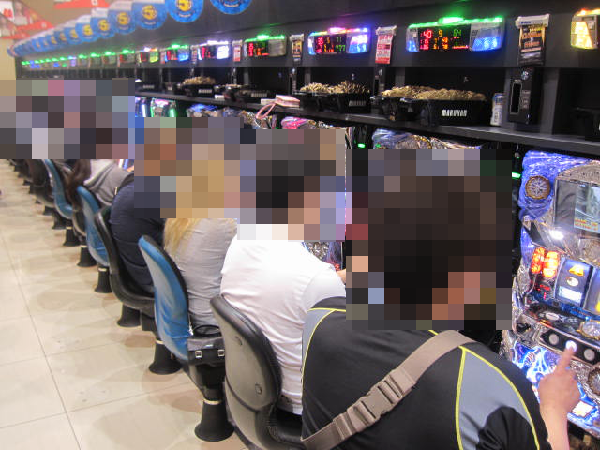 15時を過ぎた頃の20円パチスロでは、「バジリスク~甲賀忍法帖~絆」や「押忍!サラリーマン番長」といったAT機が朝イチからの人気をキープ。