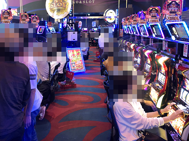 国道8号線沿いにあり、700台以上の遊技台が設置されている広々としたホールだ。