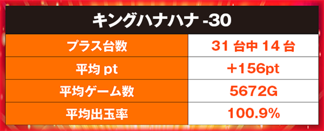 キングハナハナ-30の2台がボーナス回数70回以上!