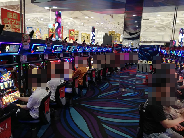 20円パチスロと5円パチスロの両方に、「ハナハナホウオウ~天翔~-30」などの沖スロが設置されているホールだ。