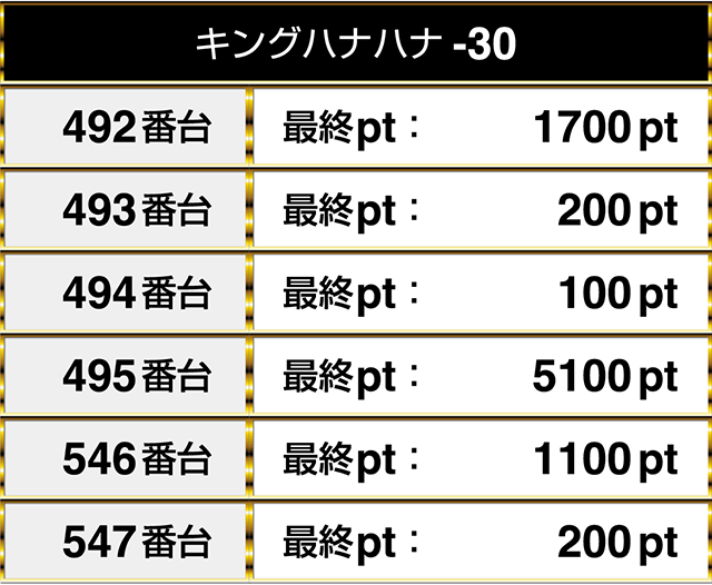 『キングハナハナ-30』は設置されている10台のうち6台がプラスpt!