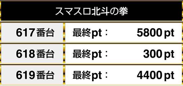 617番台は5800pt、619番台は4400ptでこの日を終えた。