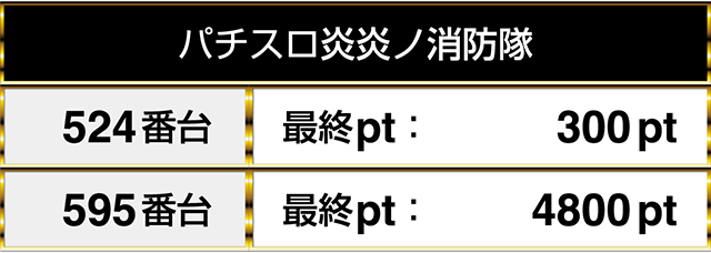 2台ともにプラスptを記録した『パチスロ炎炎ノ消防隊』には、4800ptの台があった。