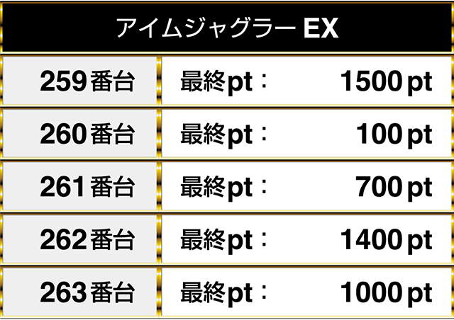 5台設置の『アイムジャグラーEX』は全台がプラスptとなった。