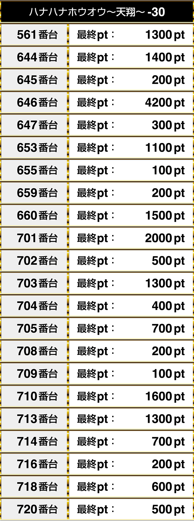 『ハナハナホウオウ~天翔~-30』は46台中22台がプラスptとなり、9台が1000ptオーバー!