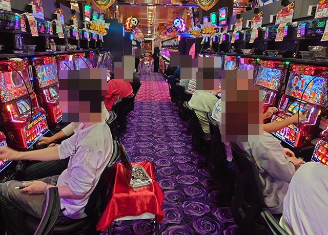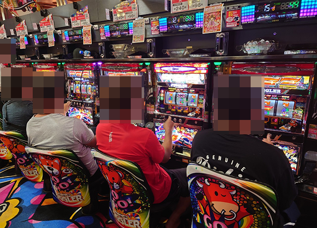遊技を満喫しているようなプレイヤーがおり、いくつもの台で明るい笑顔を確認している。