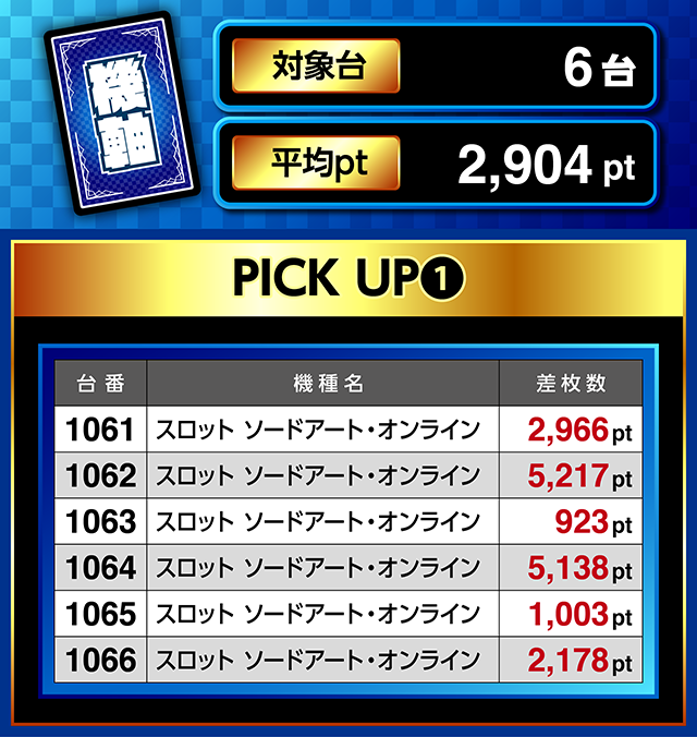 5,100ptを超えた台が、1062番台と1064番台と2台あった。